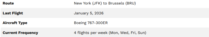 According to scheduling data from Cirium, the airline has penciled in its final flight out of JFK on January 5th, with the return leg from Brussels scheduled the following day. The airline currently operates four flights a week between the two airports, with outbound services leaving New York every Monday, Wednesday, Friday and Sunday.