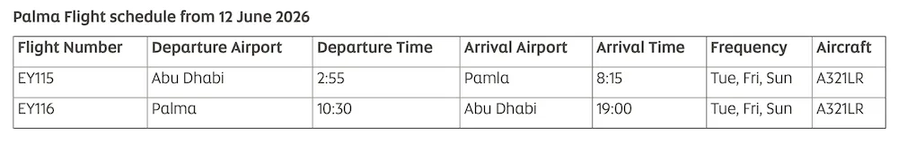 From 12 June until mid-September 2026, Etihad will operate 3 weekly flights between Abu Dhabi and Palma de Mallorca, giving travelers the perfect gateway to golden beaches, turquoise waters, and vibrant Spanish culture. From 12 June until mid-September 2026, Etihad will operate 3 weekly flights between Abu Dhabi and Palma de Mallorca, giving travelers the perfect gateway to golden beaches, turquoise waters, and vibrant Spanish culture.